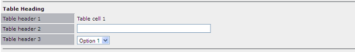 - Data display tables: Data display tables present collections of data in collections of horizontal rows. While they may appear within a form and include user input elements, the main distinction versus form tables is that rather than collections of name/value pairs, they present multiple rows corresponding to a given table heading. The remaining examples on this page are of the data display table type.